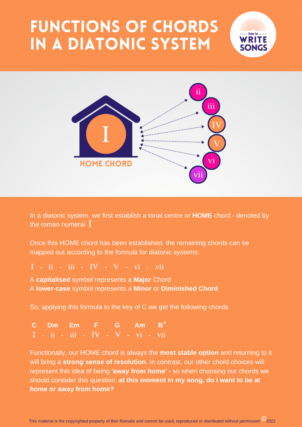 A simple and comprehensive guide to the relationships and functions of chords within a diatonic system.